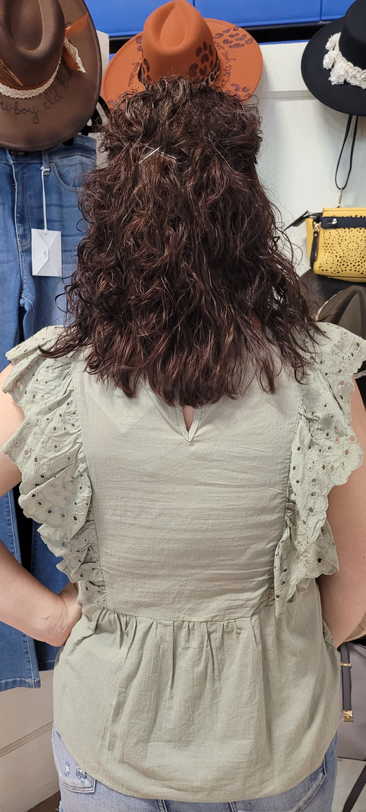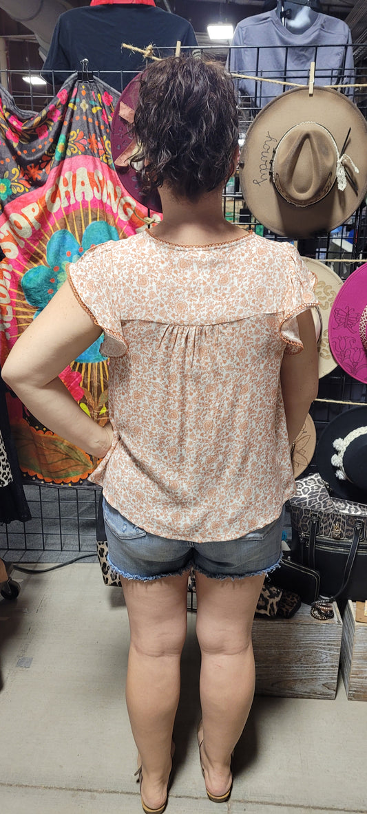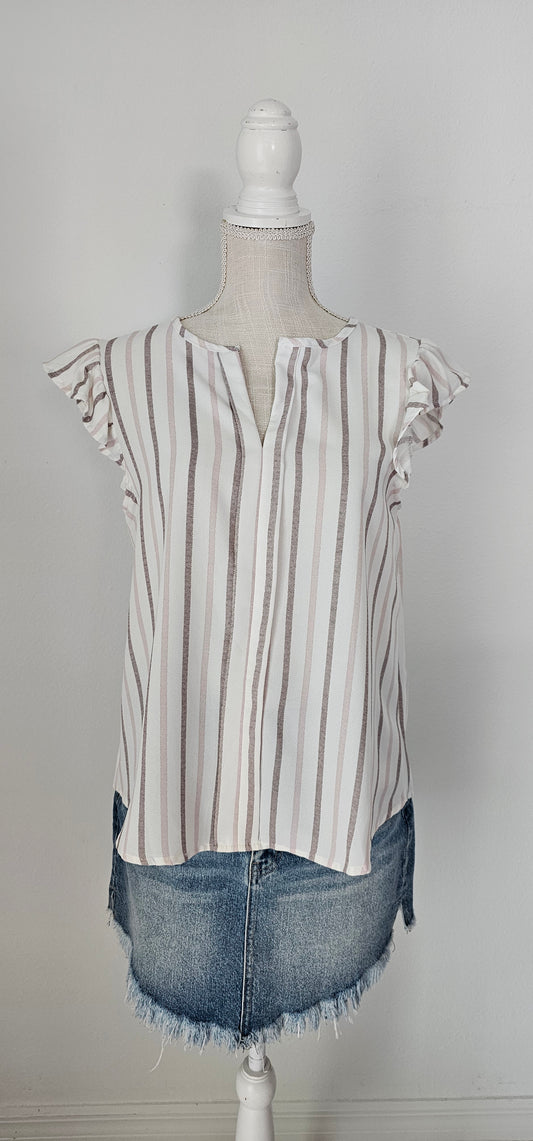 Faith Flutter Sleeve Top - Light Mocha - SMALL | LARGE