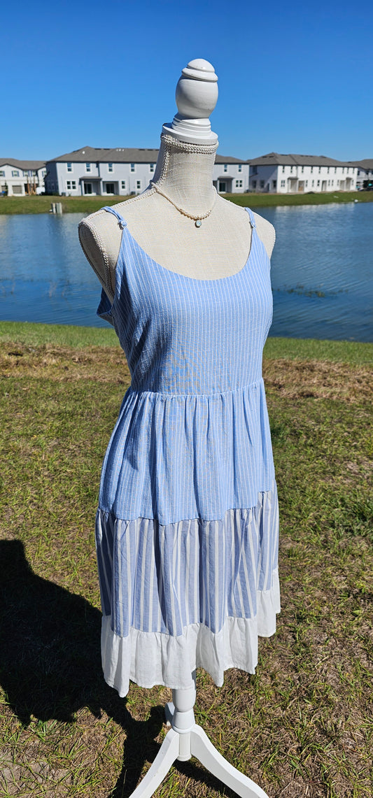 Beach Hopper Midi Dress - Light Blue & White - MEDIUM