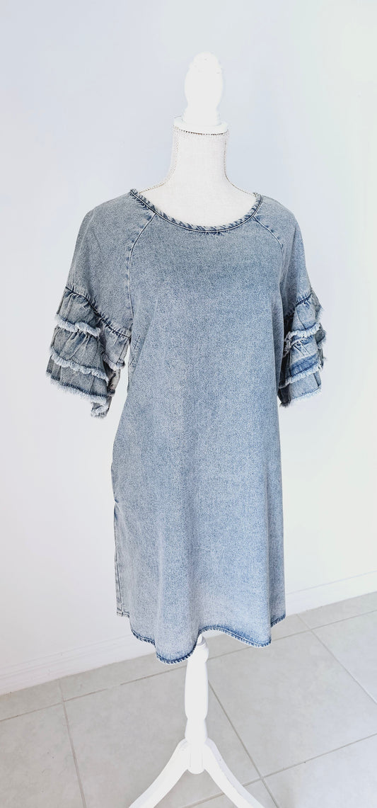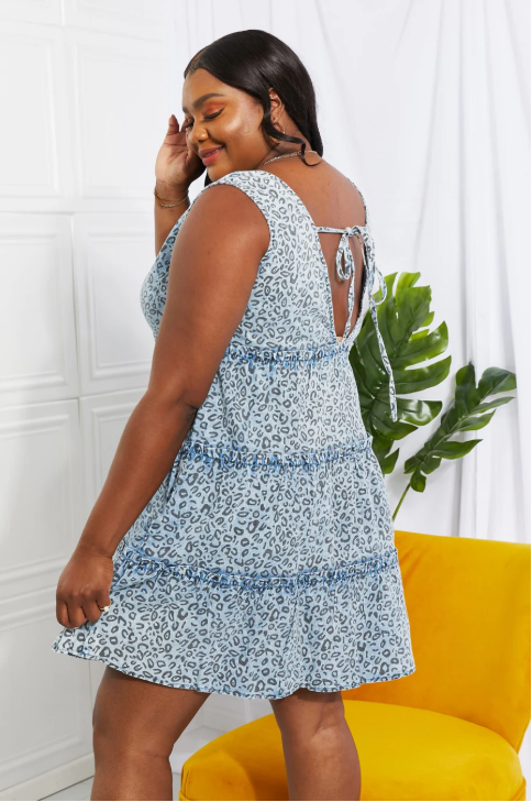 Wild One Washed Denim Leopard Dress - Dusty Blue - MEDIUM