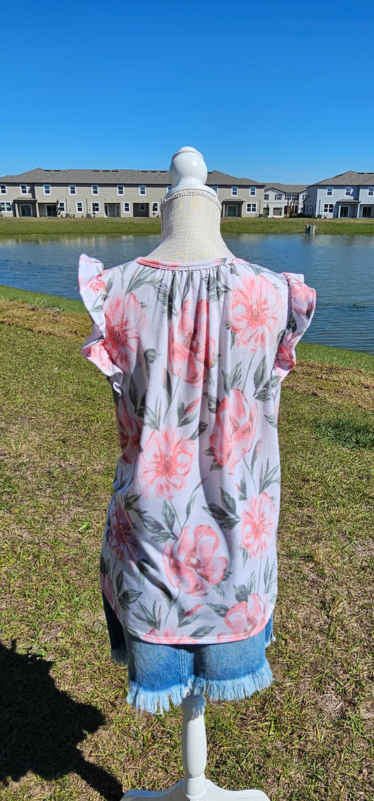 Stop & Smell The Flowers Short Top - Dusty Rose - SMALL