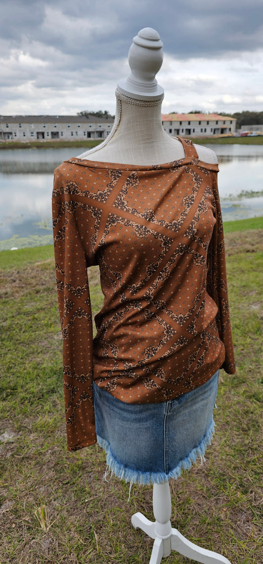 Not Today Heifer Cow Print Long Sleeve Top - Mocha - MEDIUM (DEFECT ON RIGHT SLEEVE) - FINAL SALE