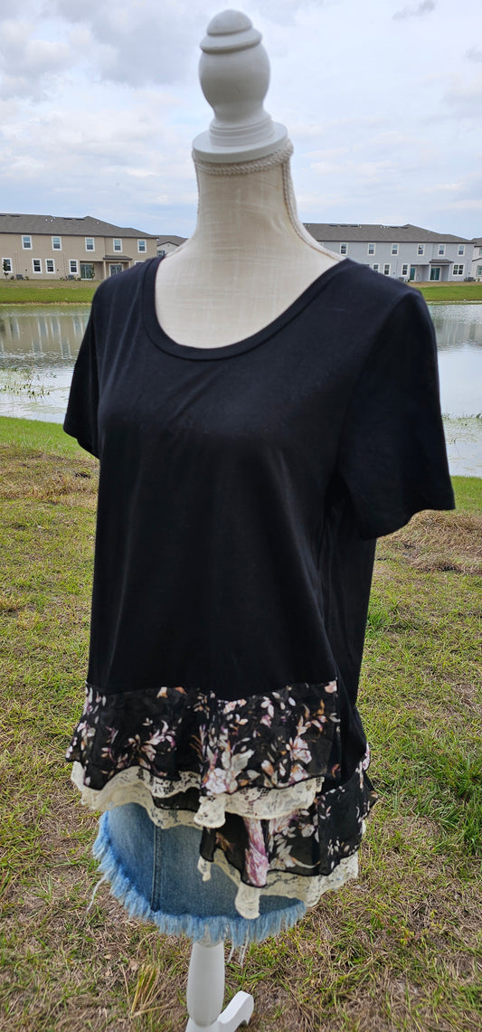 The Lacey Floral Top - Black - SMALL - FINAL SALE