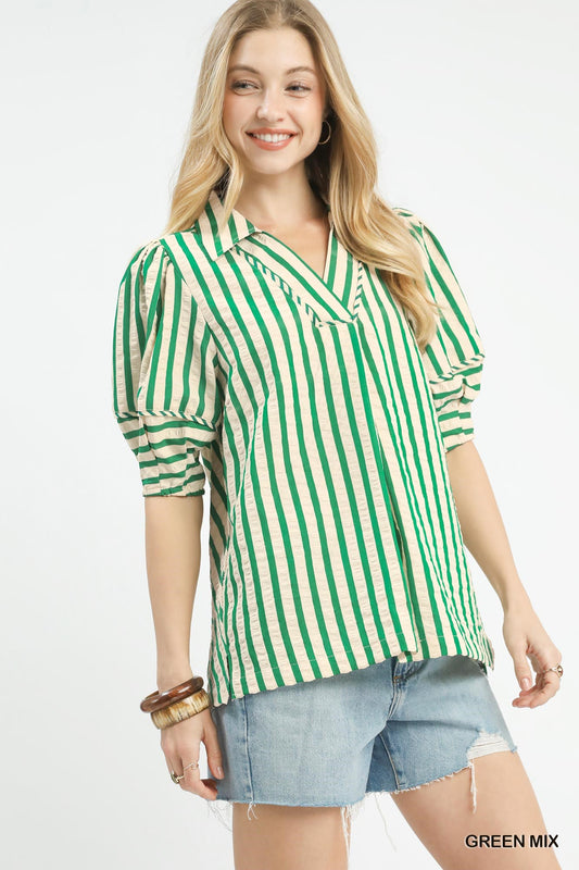 Striped Puff Sleeve Blouse - Umgee - Exclusively Online
