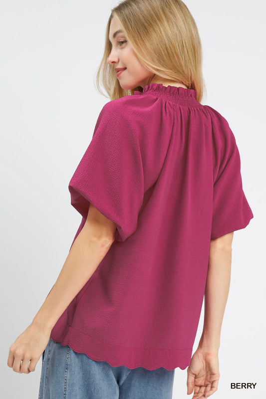 Scalloped Hem Textured Blouse - Umgee - Exclusively Online
