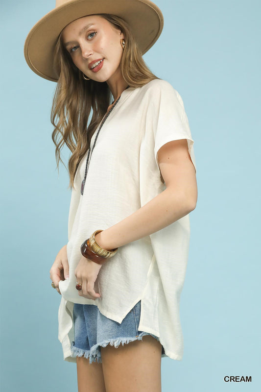 Flowy V-Neck Short Sleeve Blouse - Umgee - Exclusively Online