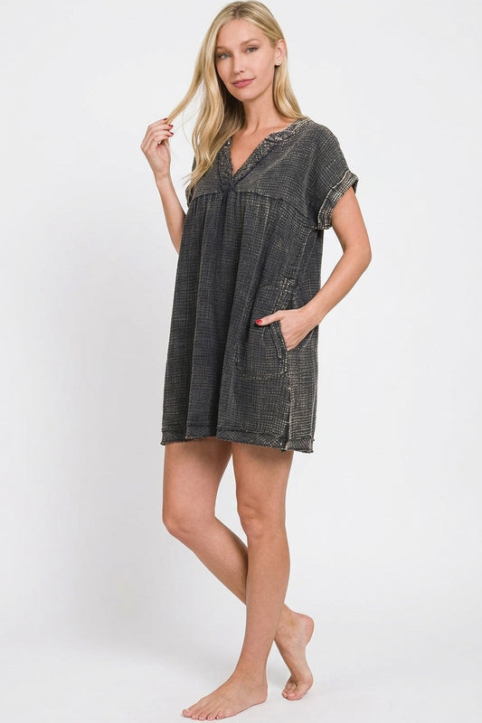 Double Gauze Raw Edge V-neck Dress - Black - Exclusively Online