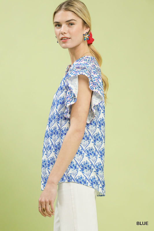 Floral Ruffle Sleeve Blouse - Umgee - Exclusively Online