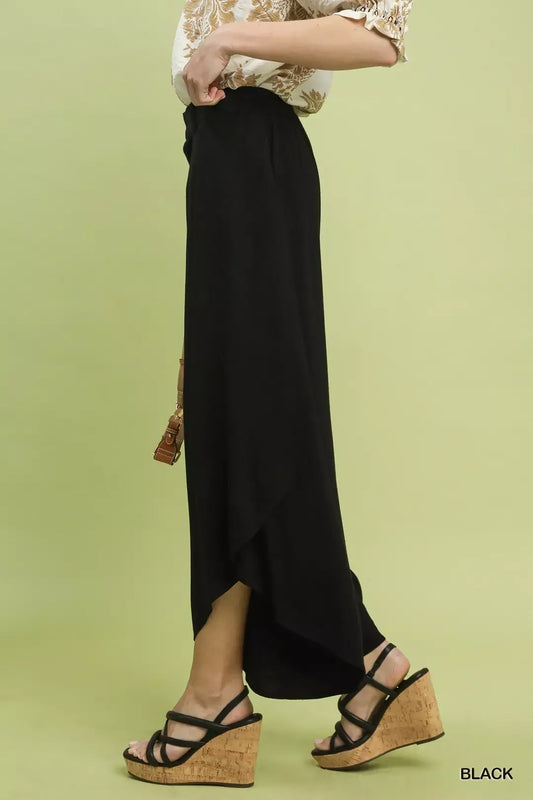 Flowy Asymmetrical Hem Wide Leg Pants - Umgee - Black - Exclusively Online
