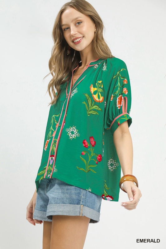 Floral Print Blouse with Contrast Trim - Umgee - Exclusively Online