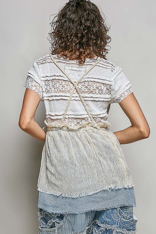 All About The Lace Short Sleeve Top - White - LARGE
