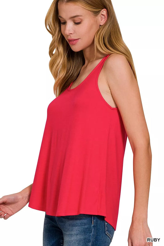 Flowy Hem Rayon Sleeveless Tank Top -