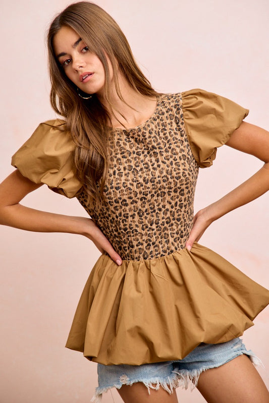 Faith Flutter Sleeve Top - Light Mocha - SMALL | LARGE