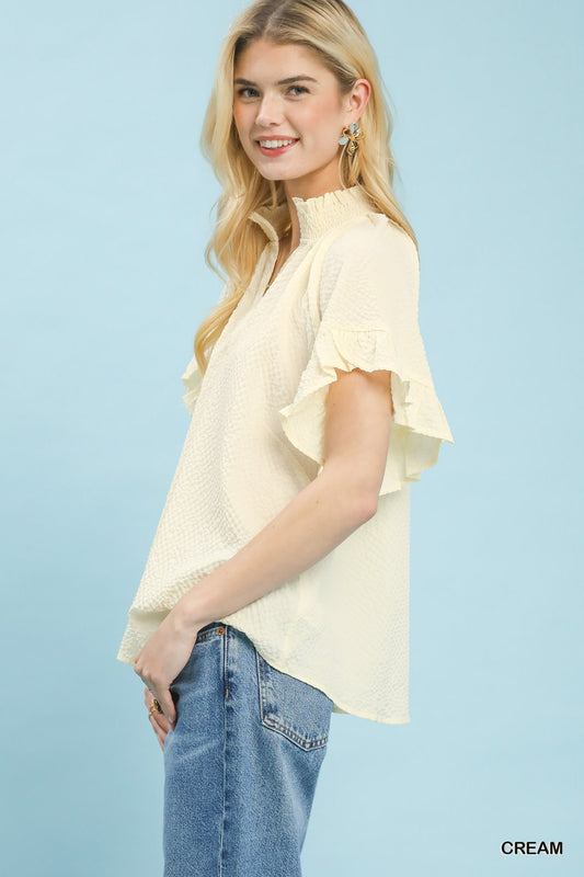 Textured Ruffle Sleeve Blouse - Umgee - Exclusively Online