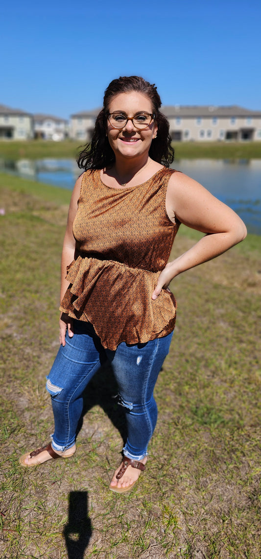 Merida Silky Satin Sleeveless Top - Rust