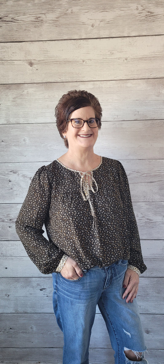 Luna Floral Blouse - Black & Ivory
