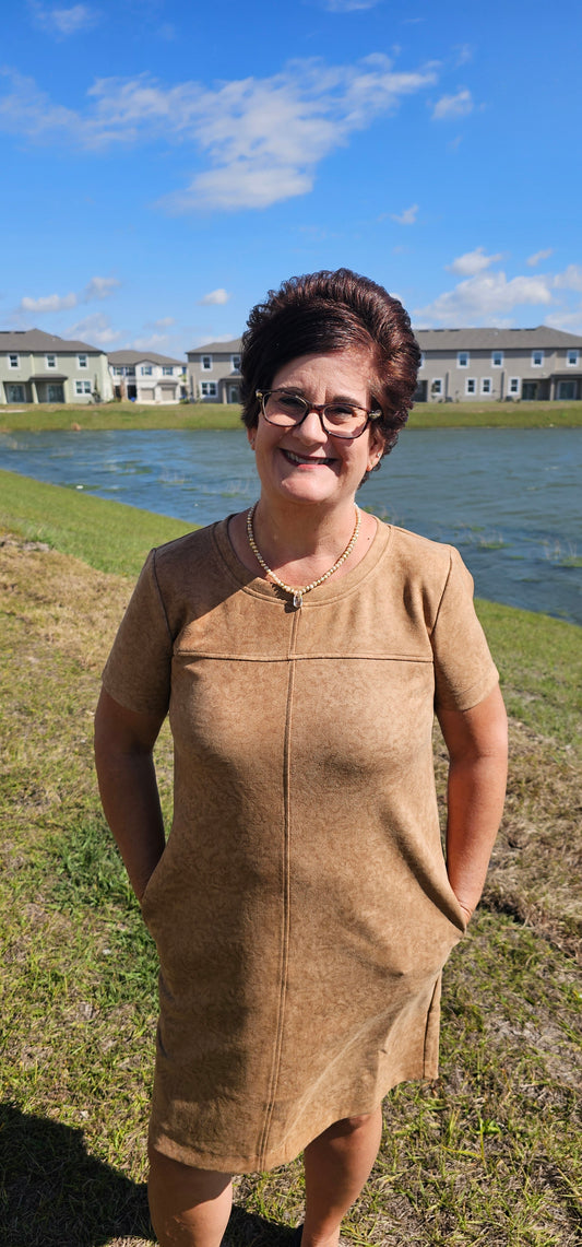 Winona Printed Suede Shift Dress - Mocha