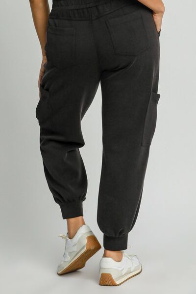 Mineral Washed Elastic Waist Cargo Pants - Umgee - Black - Exclusively Online